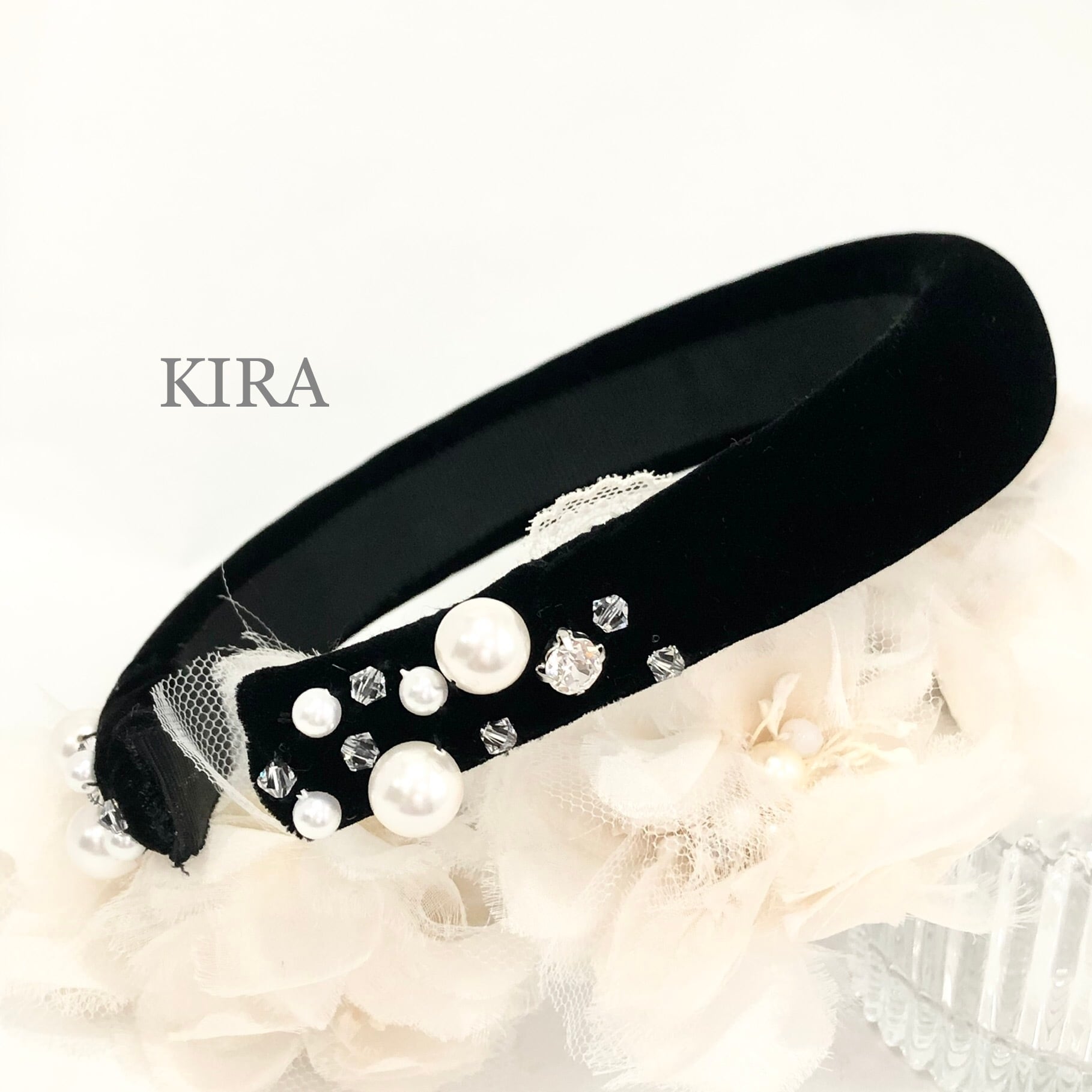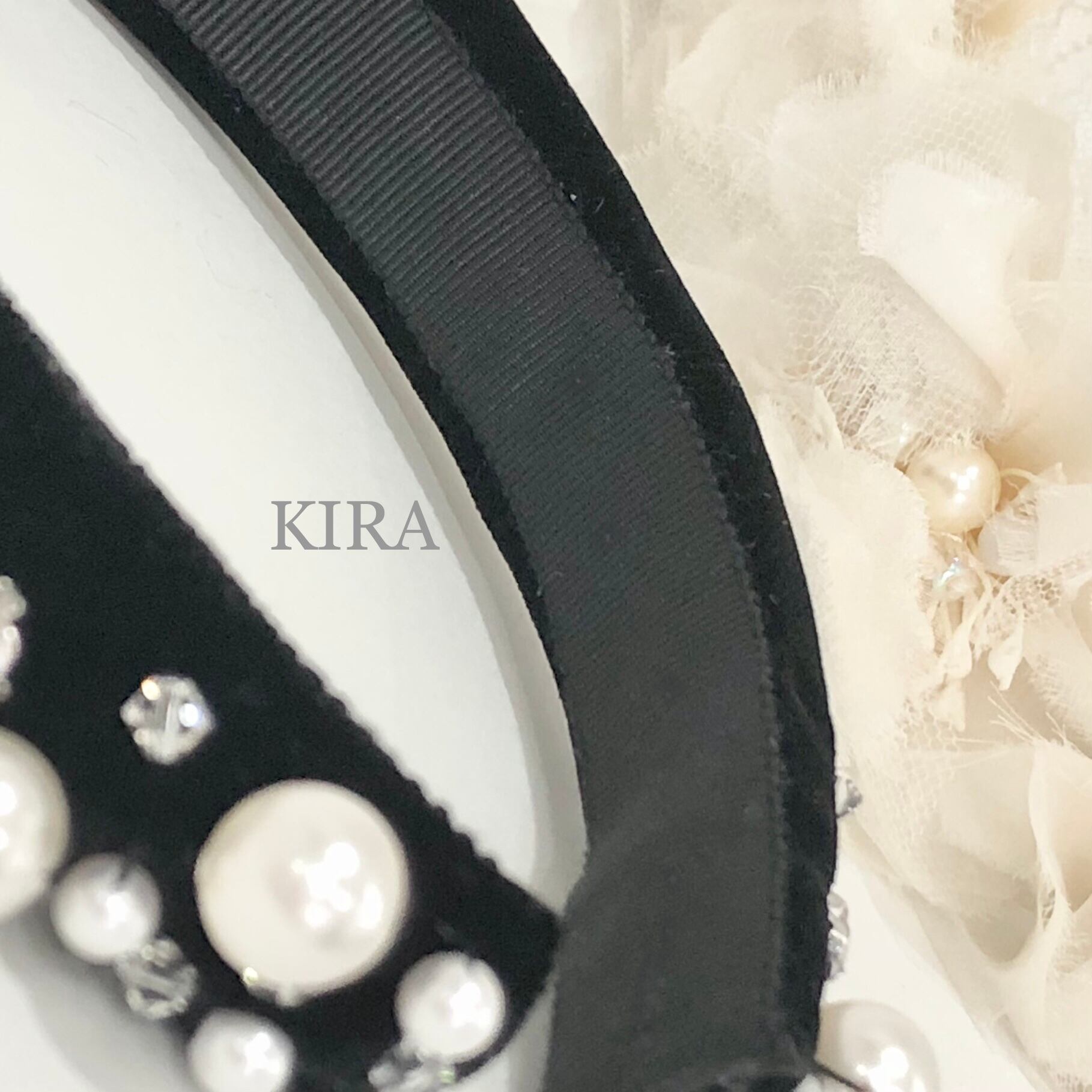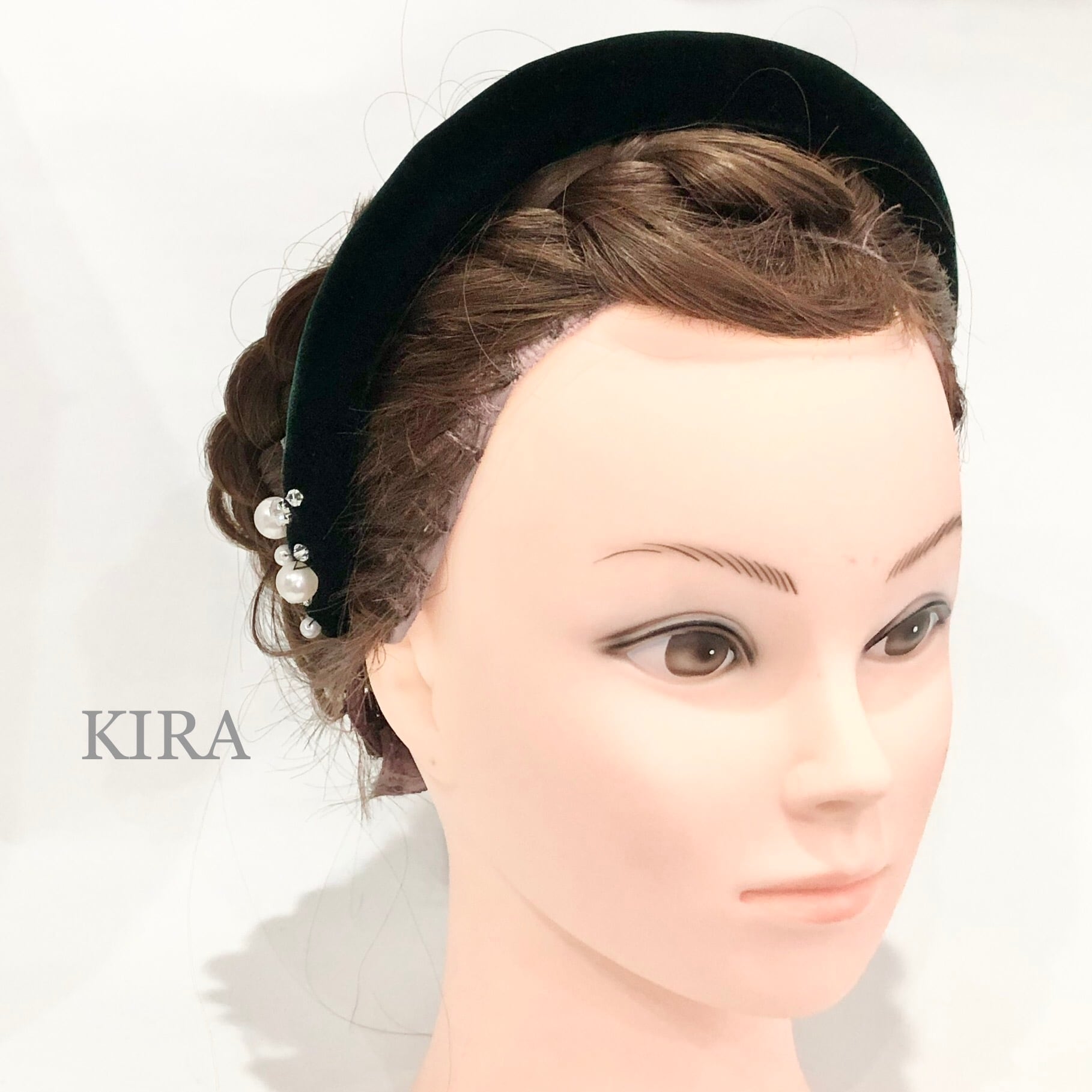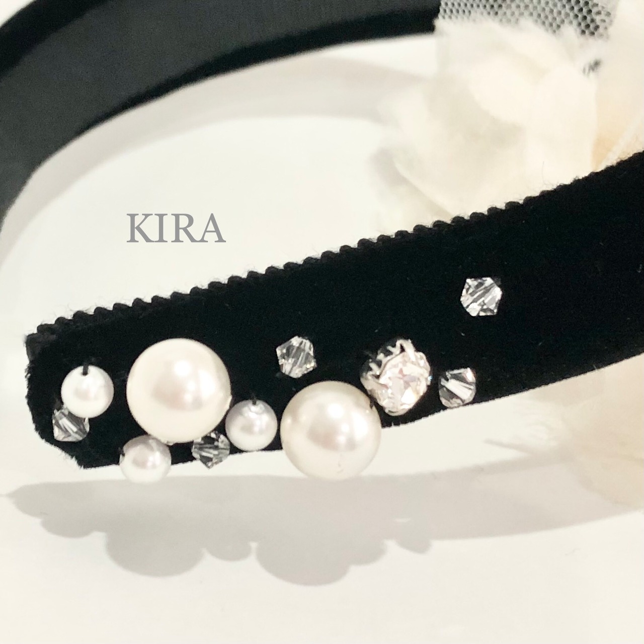 今流行りの少し太めのベルベットカチューシャに、耳元を煌びやかにパールとクリスタルを施しました✨