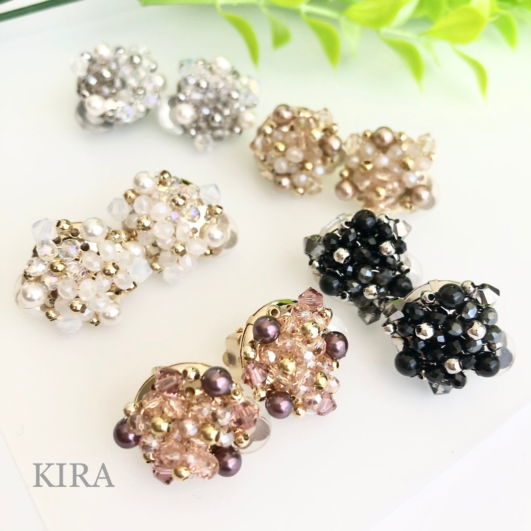 クリスタルパールとクリスタルガラスが集まった、まるで宝石箱のようにキラキラ輝くイヤリング【ピアス】です✨