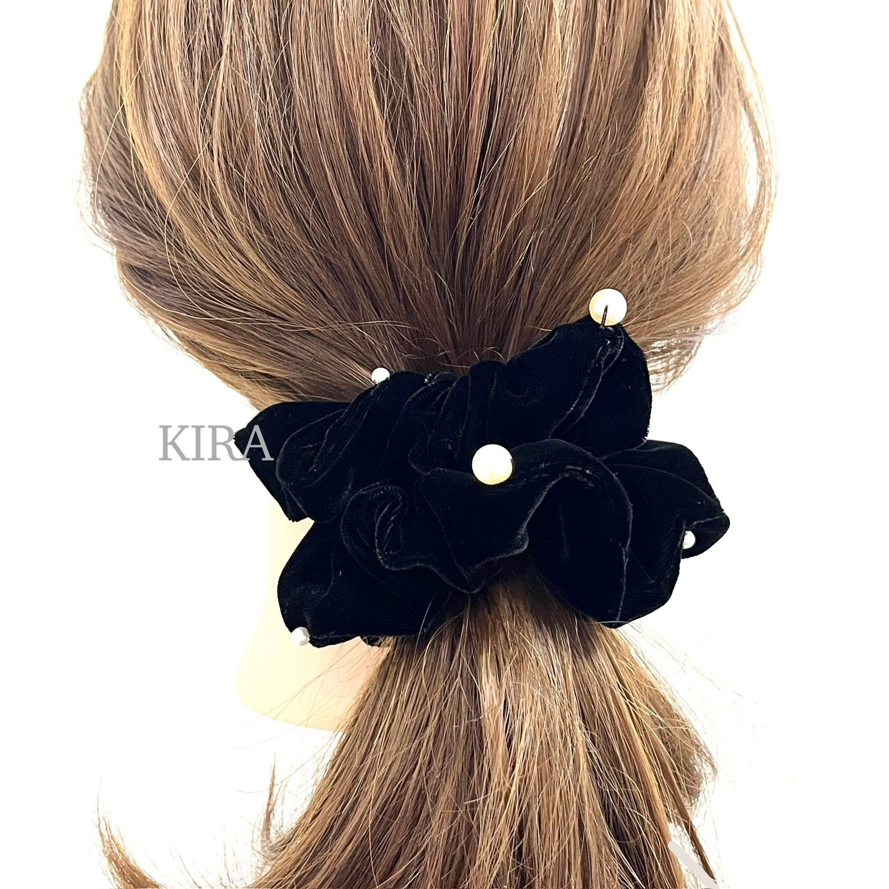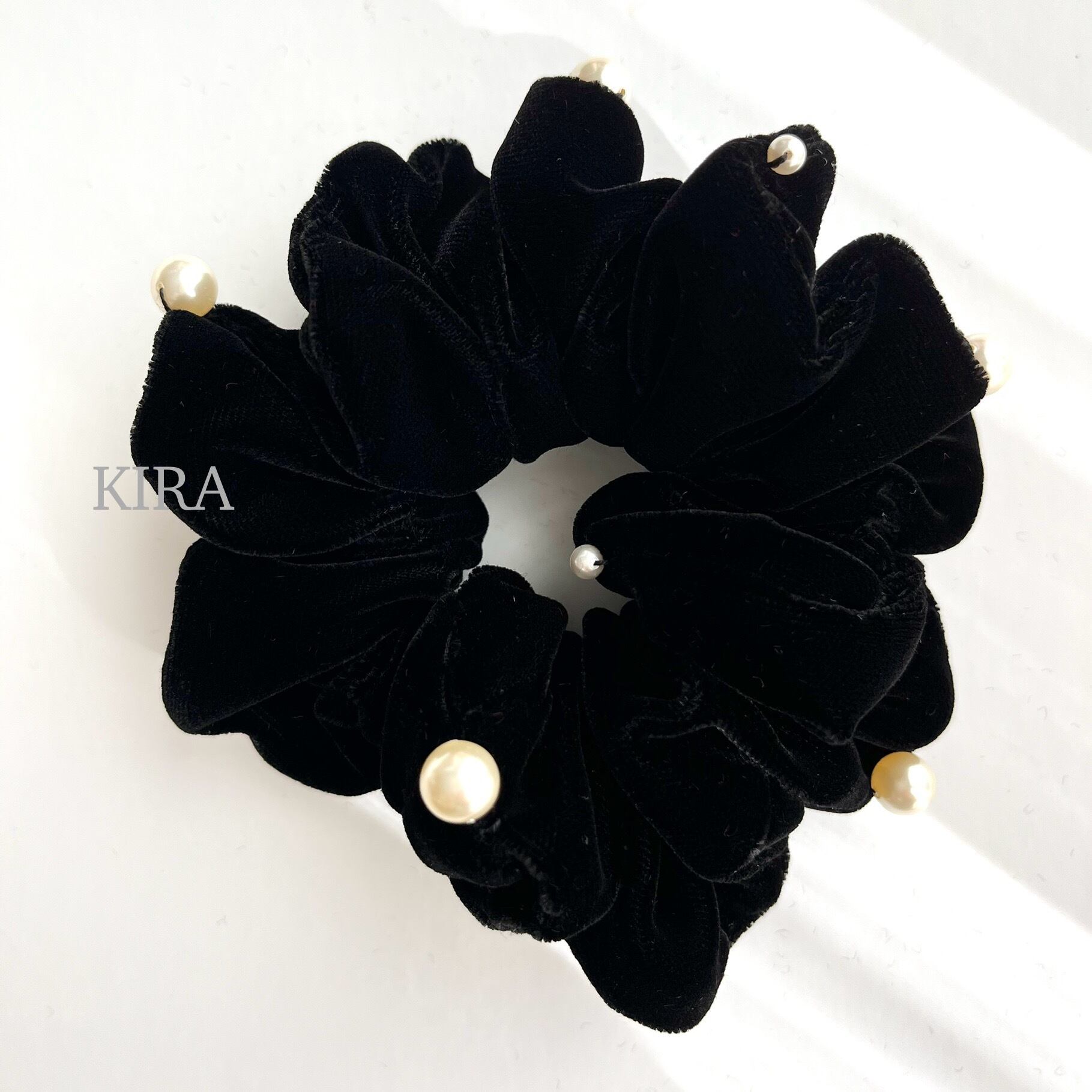 程よいボリューム感で所々に高級クリスタルパールが付いており、結ぶとパールがあちらこちらに見え、可愛らしく上品なシュシュです✨