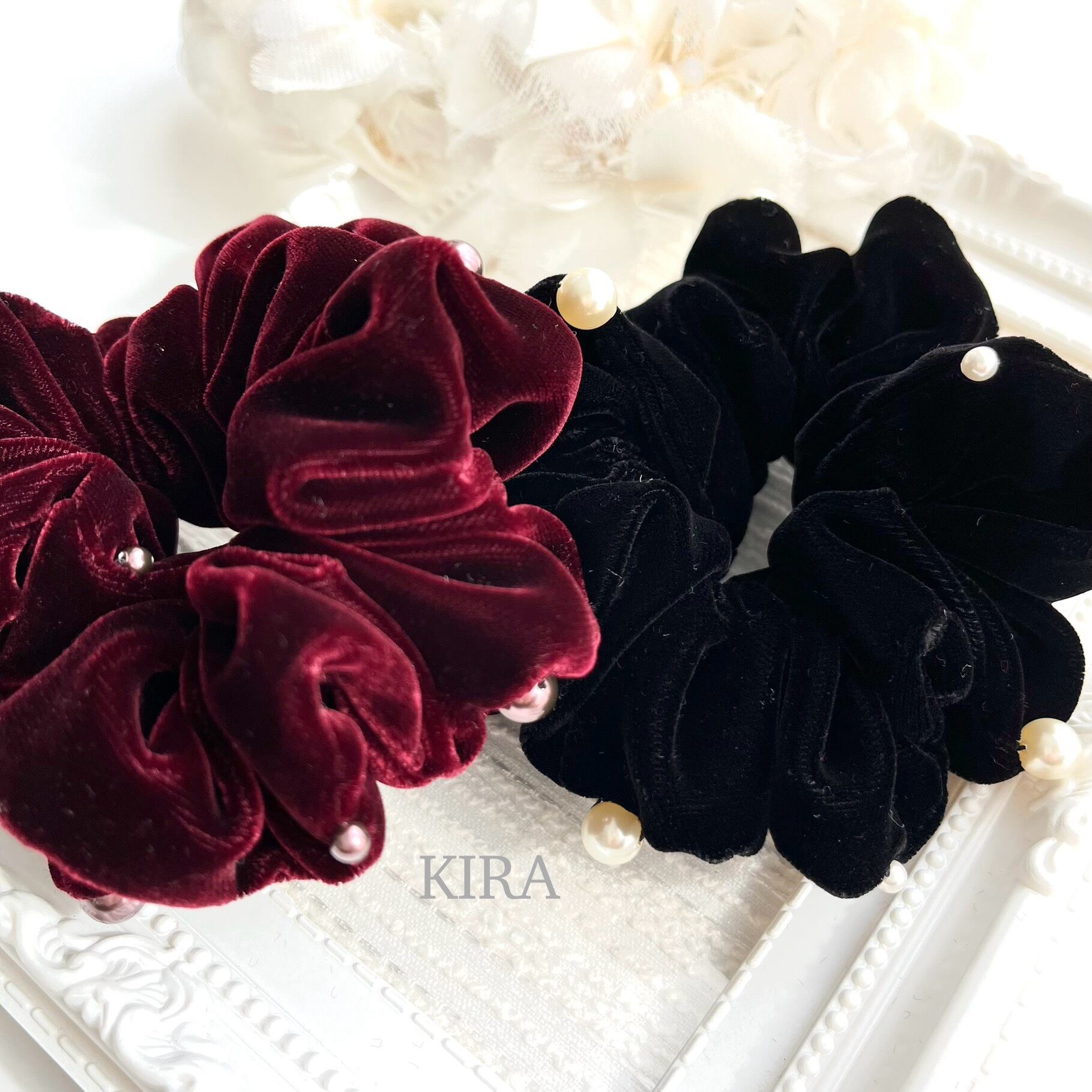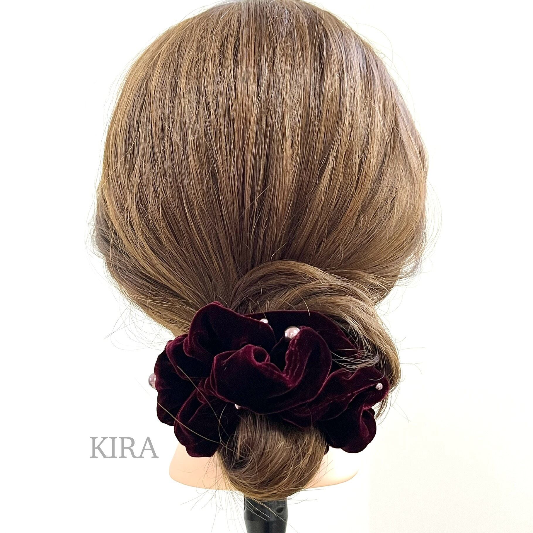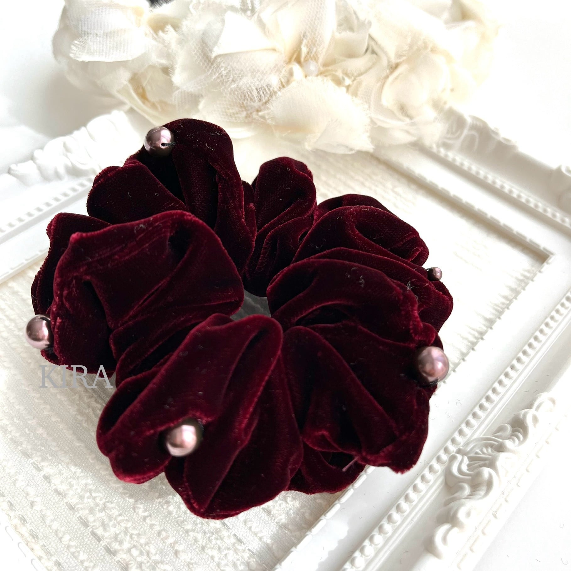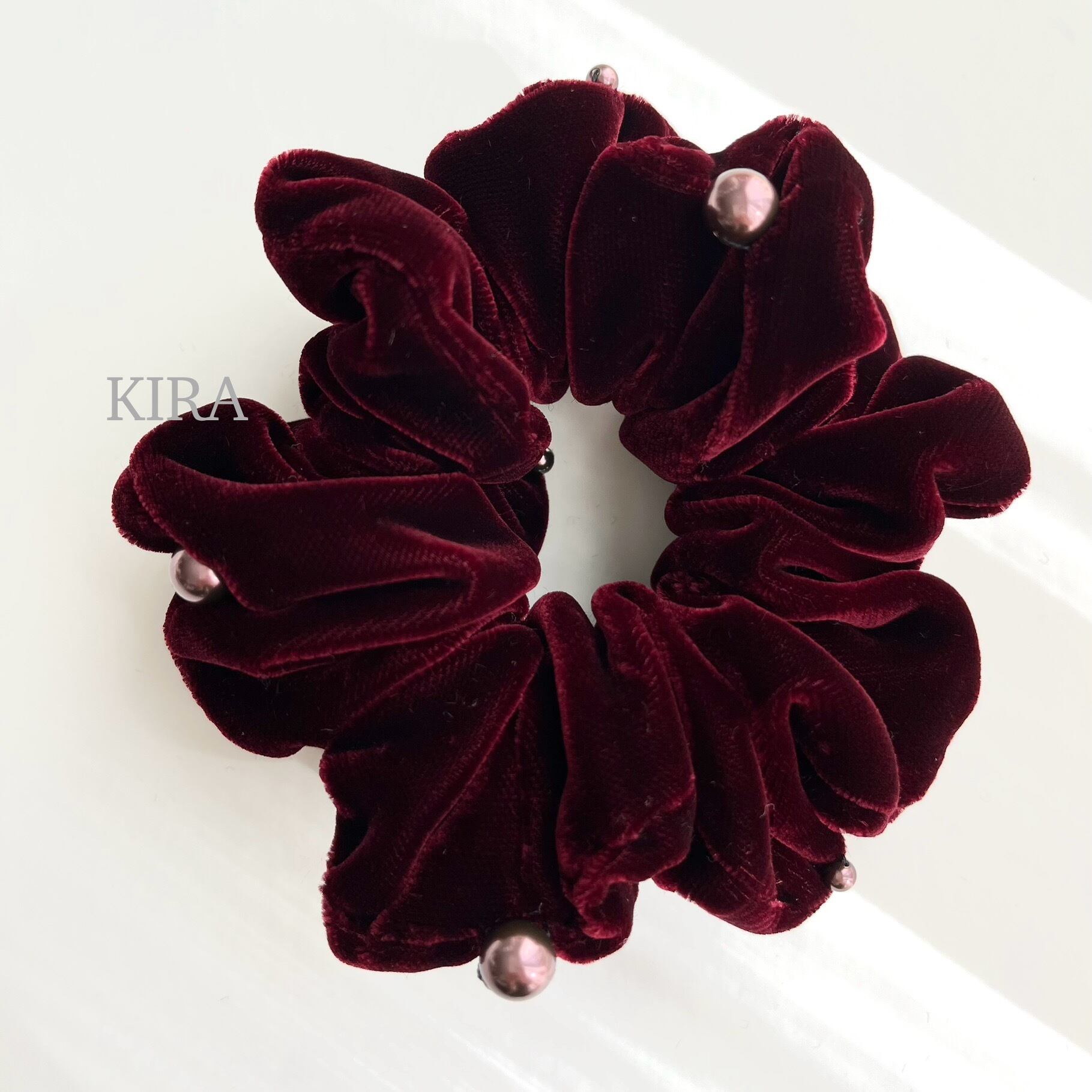 程よいボリューム感で所々に高級クリスタルパールが付いており、結ぶとパールがあちらこちらに見え、可愛らしく上品なシュシュです✨